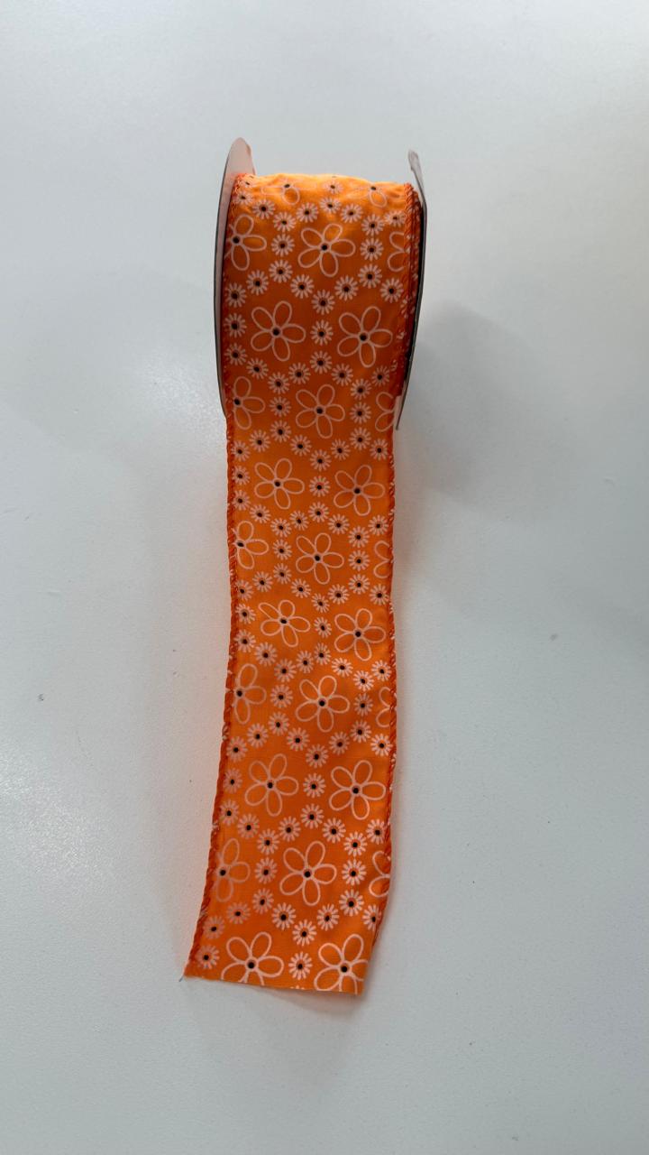 Fita aramada laranja florida branco e preto 6,3cmx9,14m