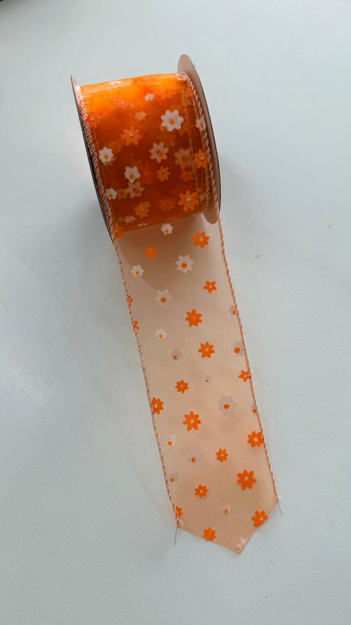 Fita aramada laranja transparente florida 6,3cmx9,14m
