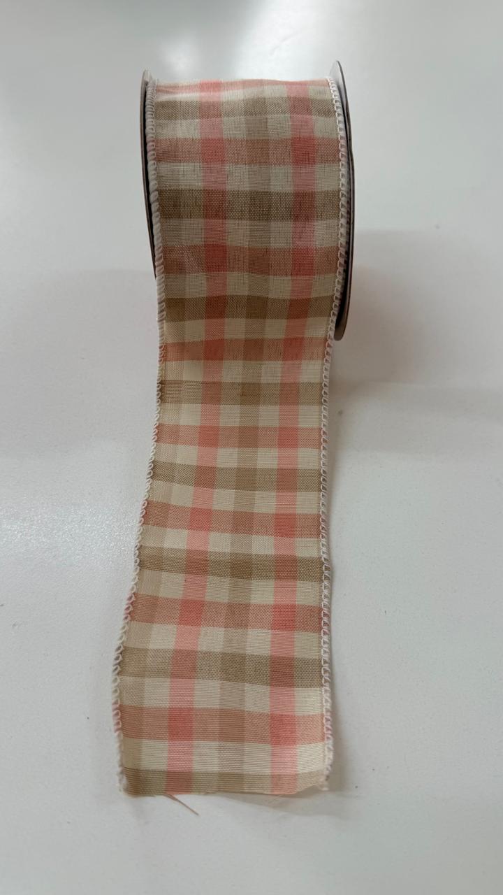 Fita aramada xadrez bege e rosa 6,3cmx9,14m quantidade