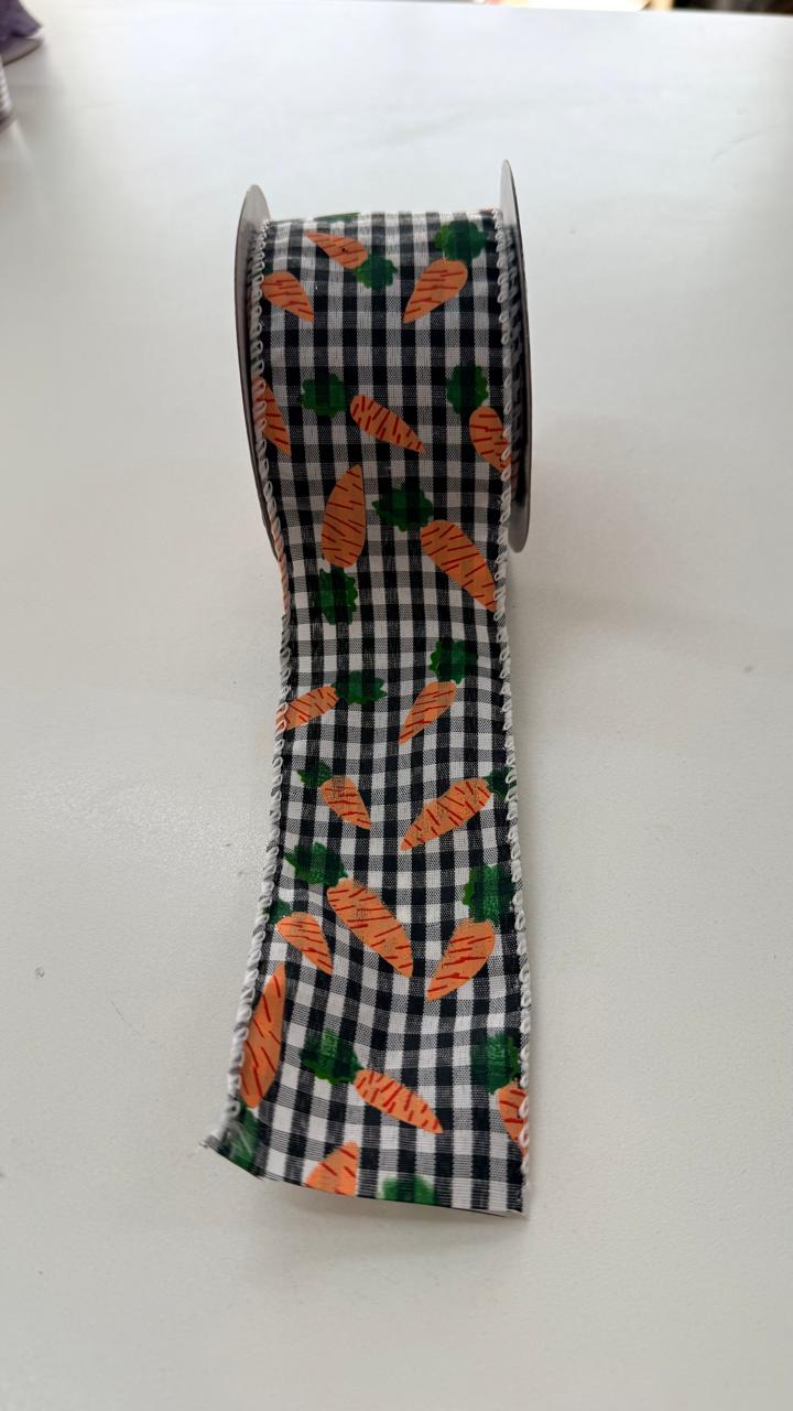 Fita aramada xadrez branca e preta com cenouras 6,3cmx9,14m