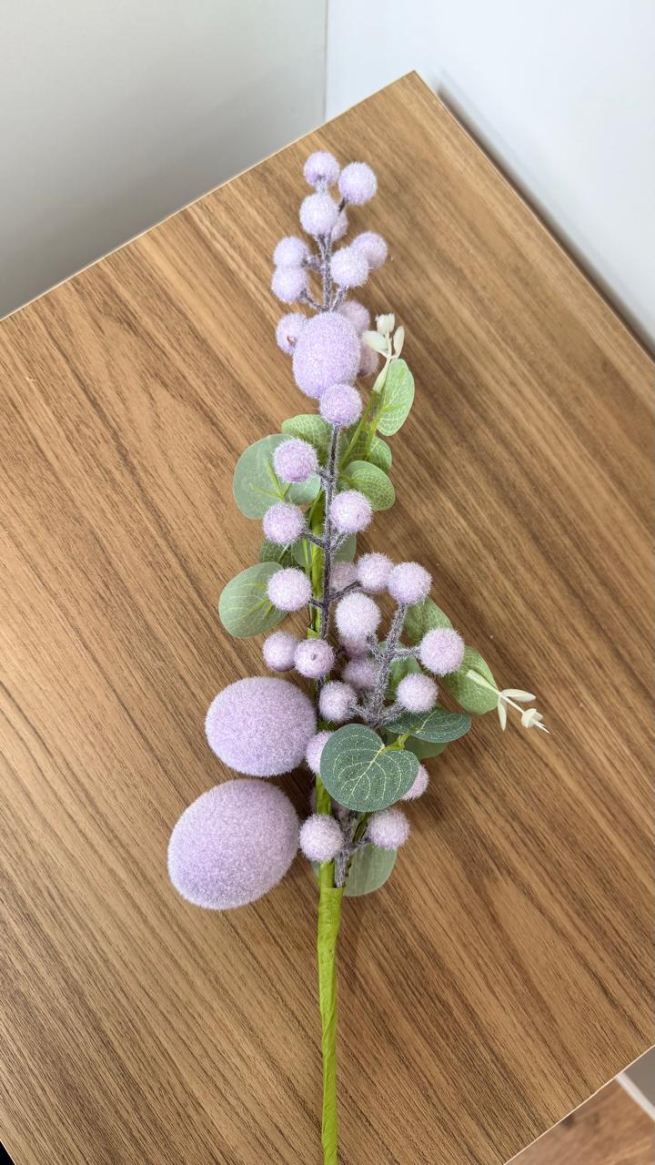 Galho com ovos lilás com 60cm de comprimento.