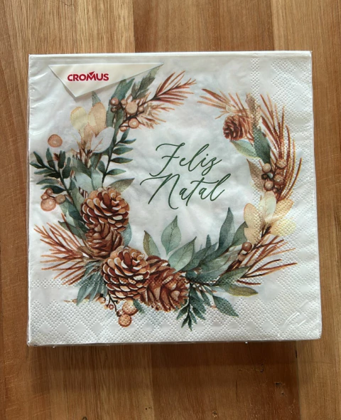 Guardanapo papel pinhas Feliz Natal 20 folhas 32,5×32,5cm