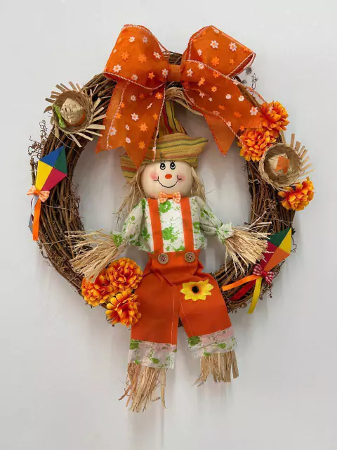 Guirlanda rústica com espantalho, com 35cm de diâmetro