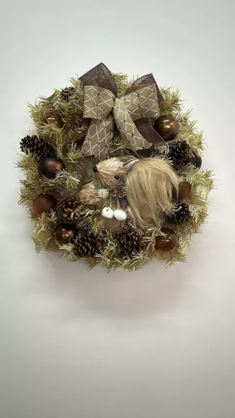 Guirlanda de Natal bege com esquilo 45cm quantidade