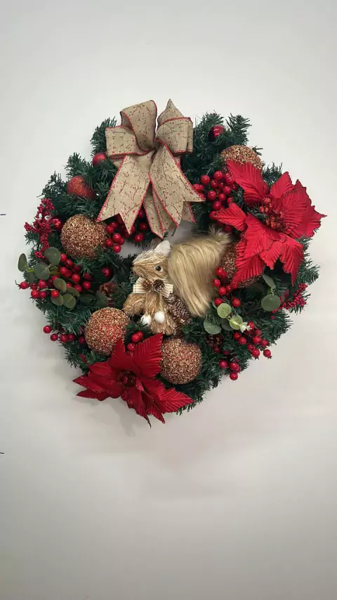 Guirlanda de Natal vermelha com esquilo 60cm