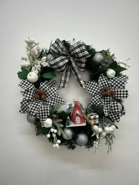 Guirlanda de Natal xadrez com casinha 45cm