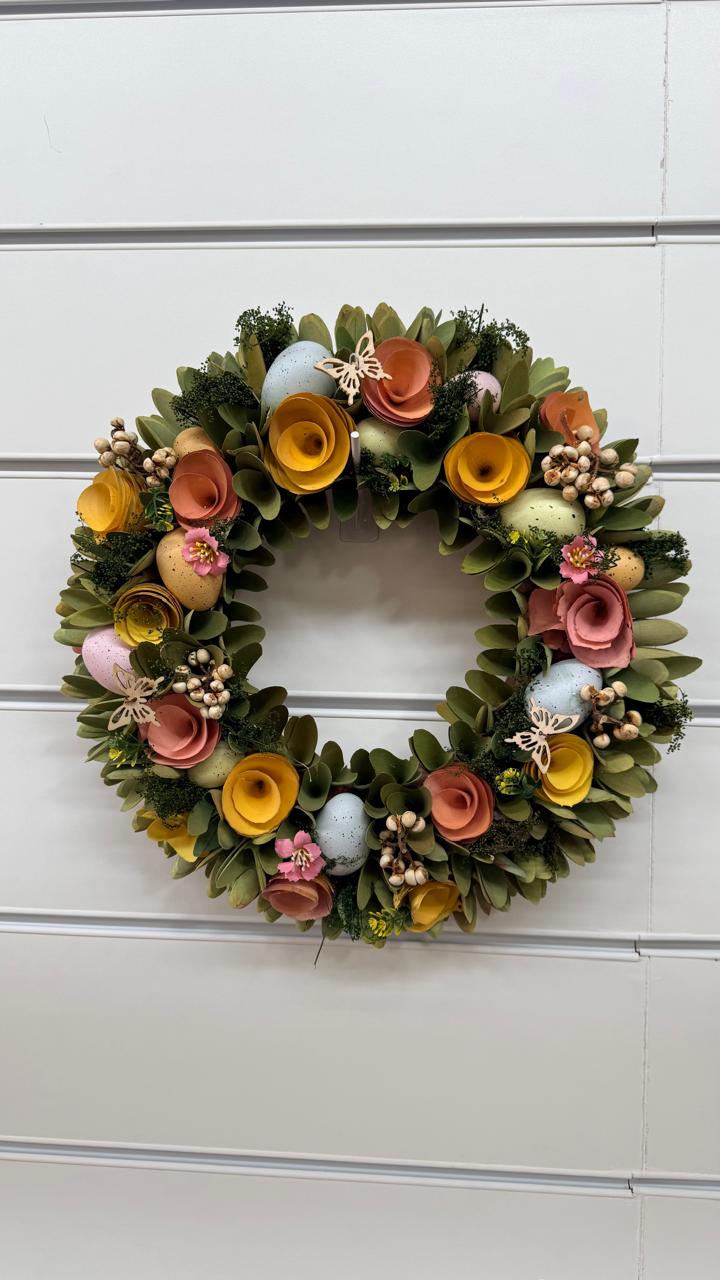 Guirlanda flores e ovos com 40cm de diâmetro