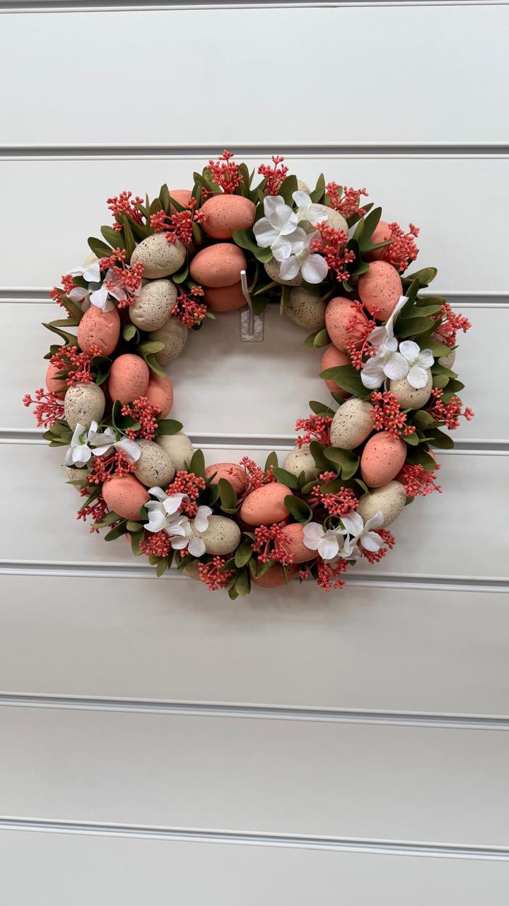 Guirlanda ovos rosa e branco, com 45cm de diâmetro