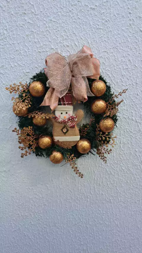 Guirlanda rosé com boneco de neve 35cm