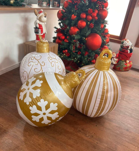 Inflável Bolas de Natal branco e dourado 60cm 3 pçs quantidade