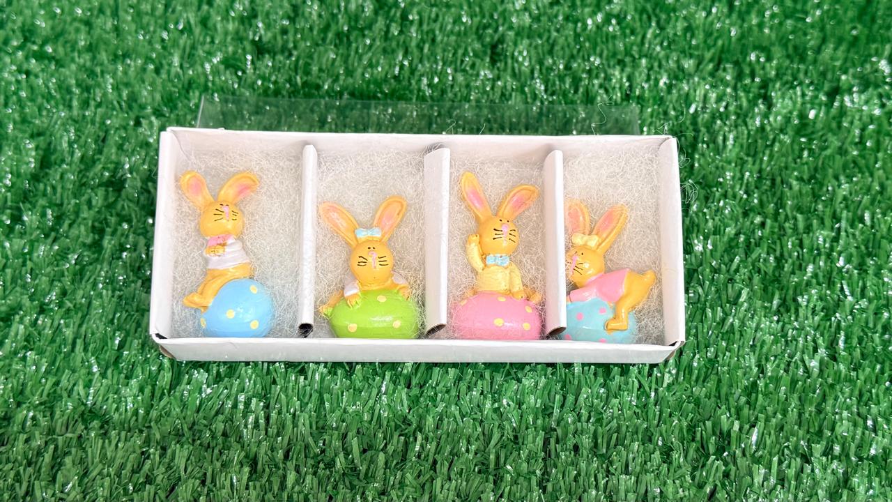 Kit 4 mini coelhos sentados no ovo de resina