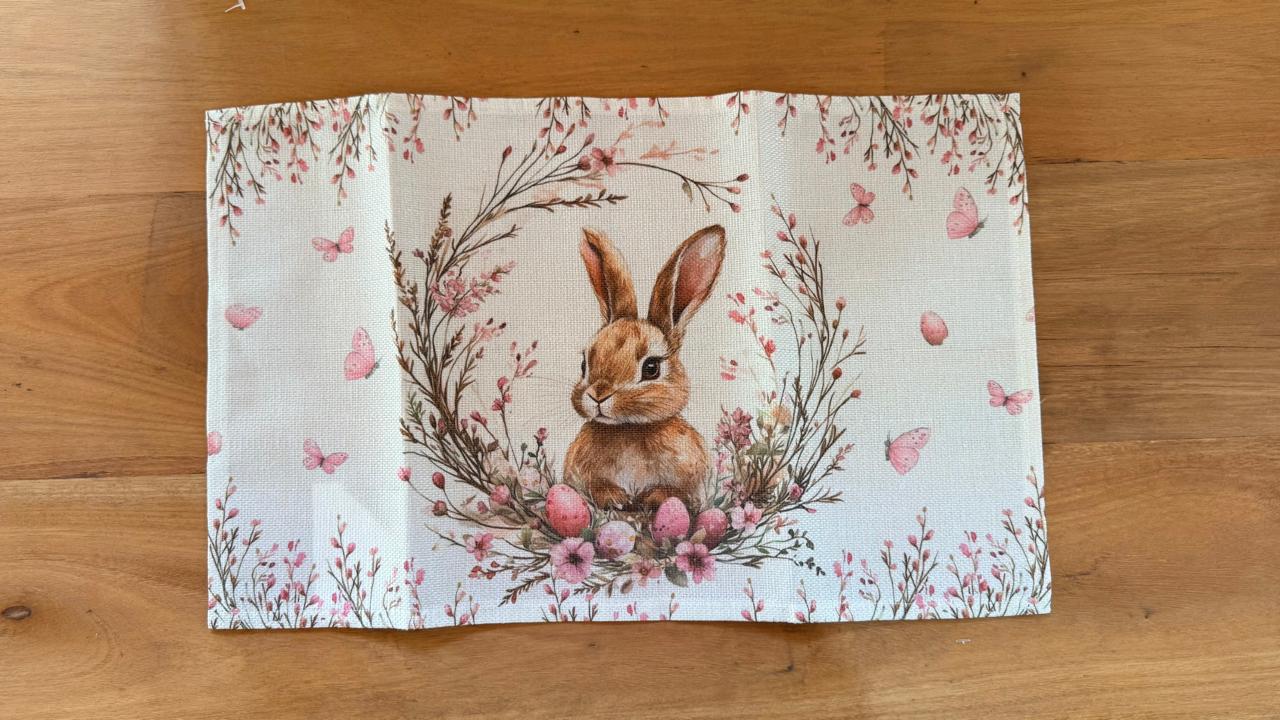 Kit 4 pçs jogo americano coelhos e flores de tecido 30x48cm