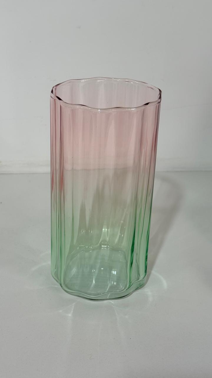 Kit 6 copos vidro degradê verde rosa 440ml 14cm