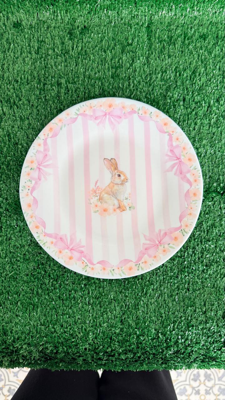 Kit 6 Pratos rasos vidro opalino branco e rosa com flores e coelho
