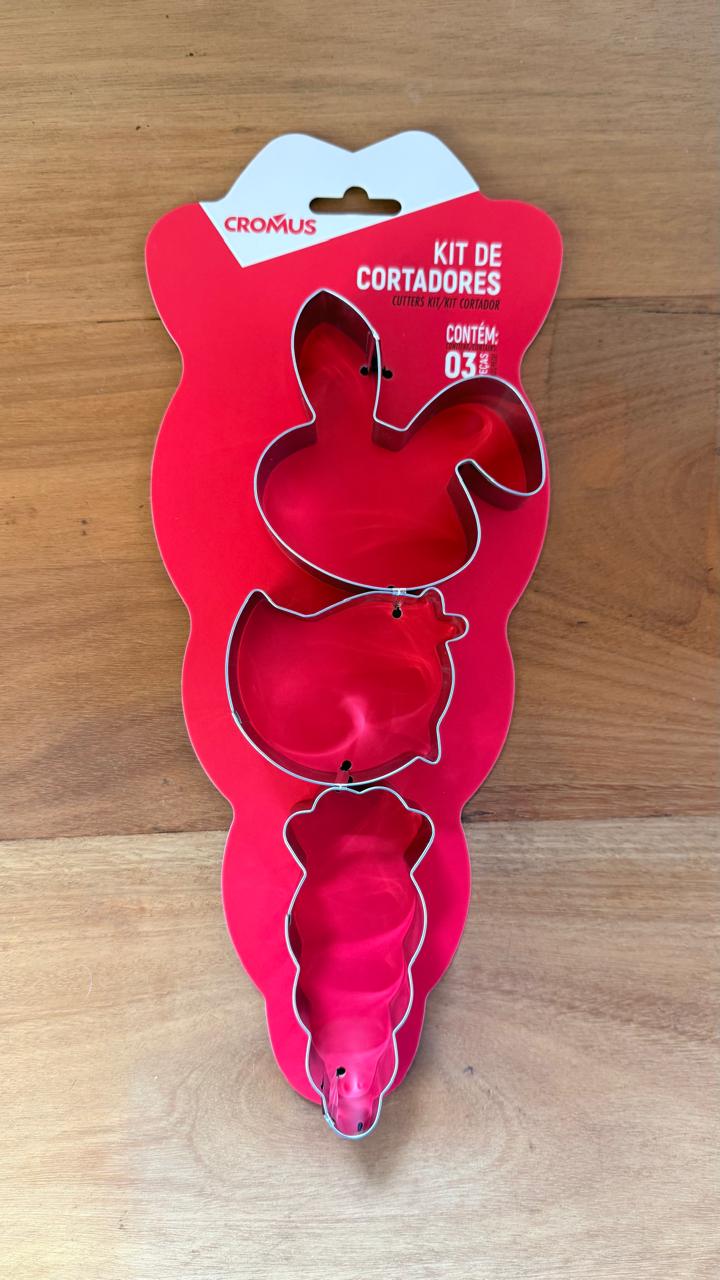 Kit com 3 cortadores de coelho pintinho e cenoura