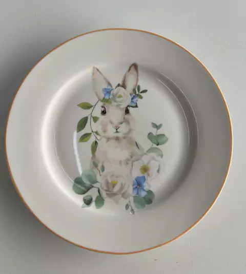 Kit com 6 pratos de sobremesa coelhos branco e verde