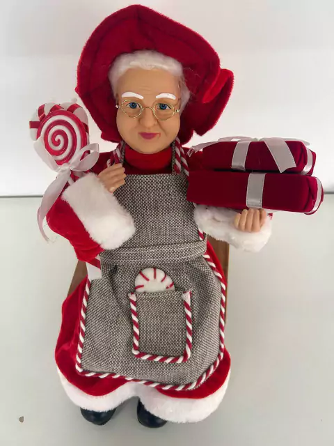 Mamãe Noel sentada com presente e pirulito, com 45cm de altura.