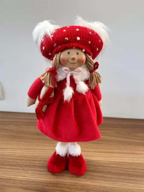 Menina em pé roupa vermelha com 37cm de altura