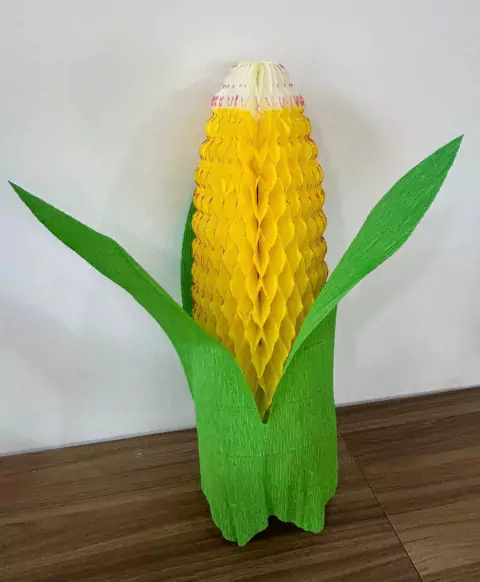 Espiga de milho de papel crepom com 48cm de altura.