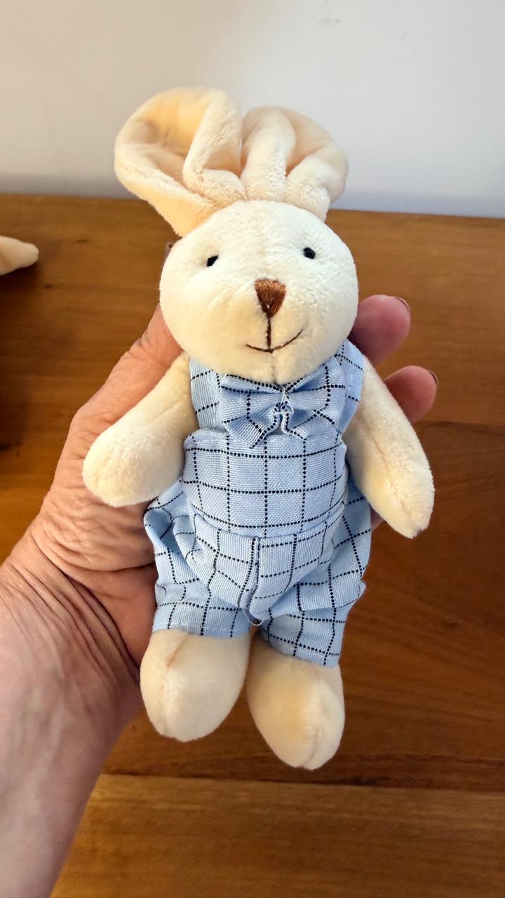 Mini coelho roupa azul 20cm