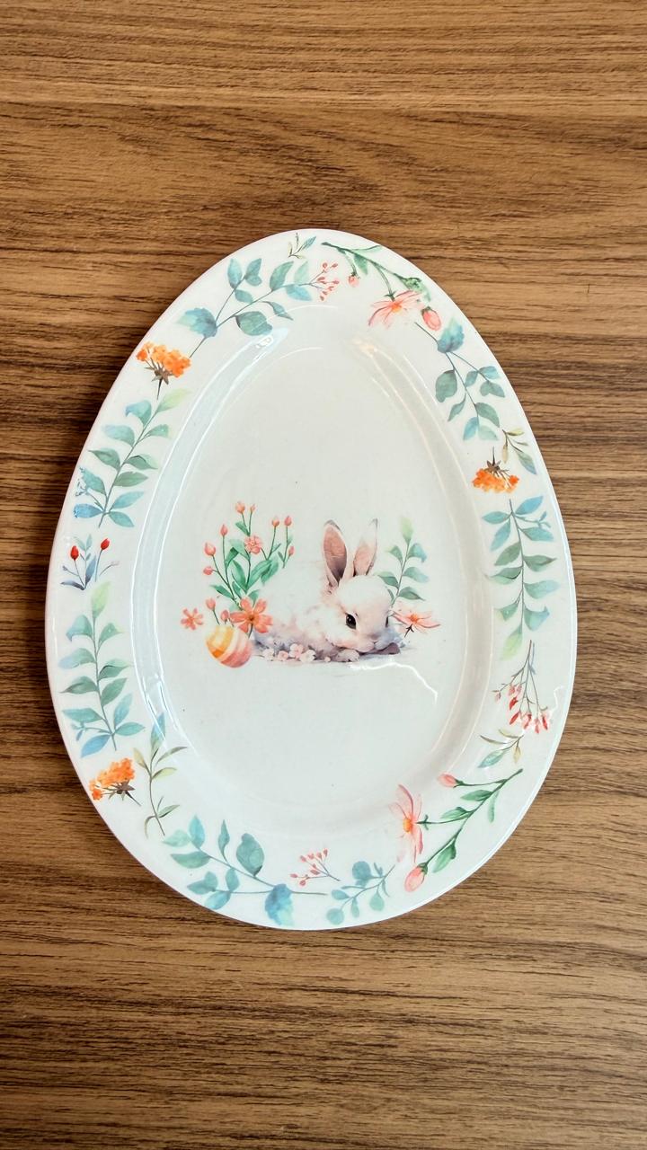 Mini prato oval porcelana coelho e flores 14cm quantidade