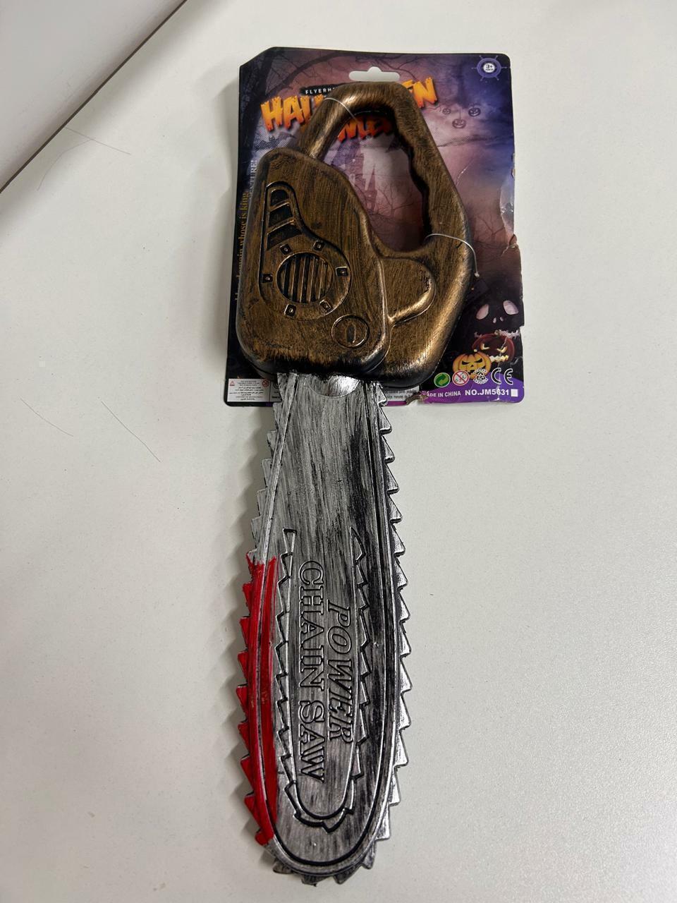 Motosserra com sangue decorativa, de plástico, com 40cm