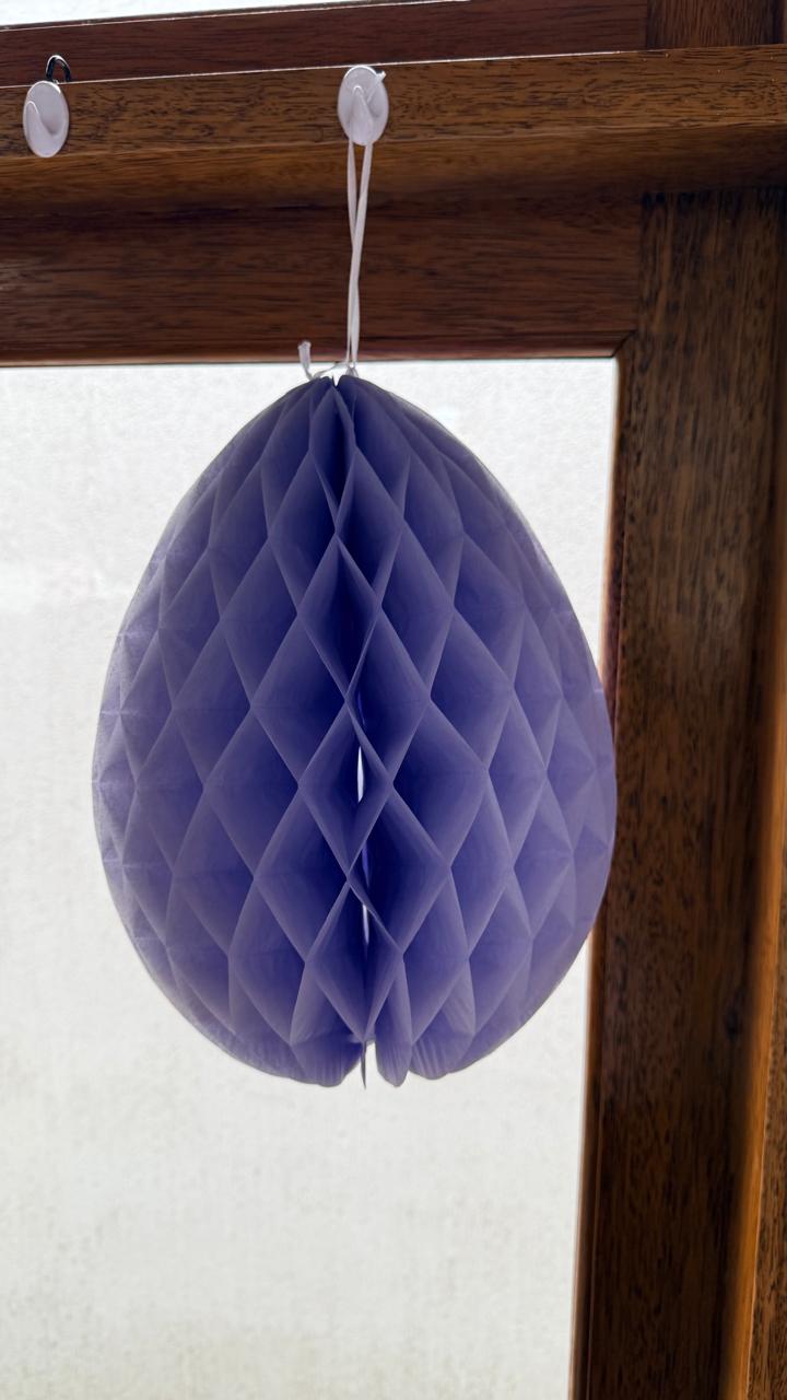 Ovo de dobradura lilás para pendurar, com 31,5x24x24cm