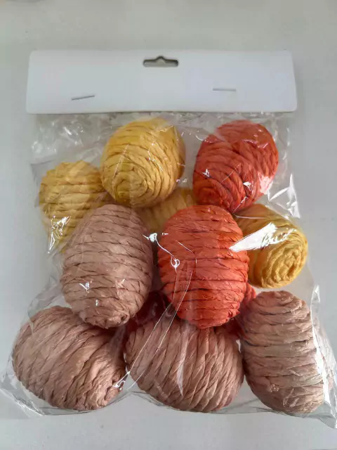 Ovos cor creme, rosa e laranja com 12 unidades, de sisal.