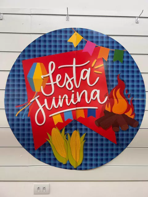 Painel Decorativo Festa Junina com 1,16m diâm, de papelão, com 4 peças.