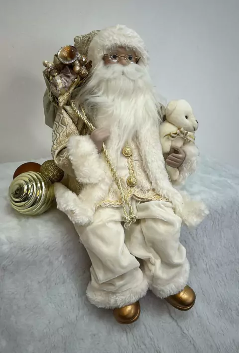 Papai Noel dourado e branco sentado 30cm