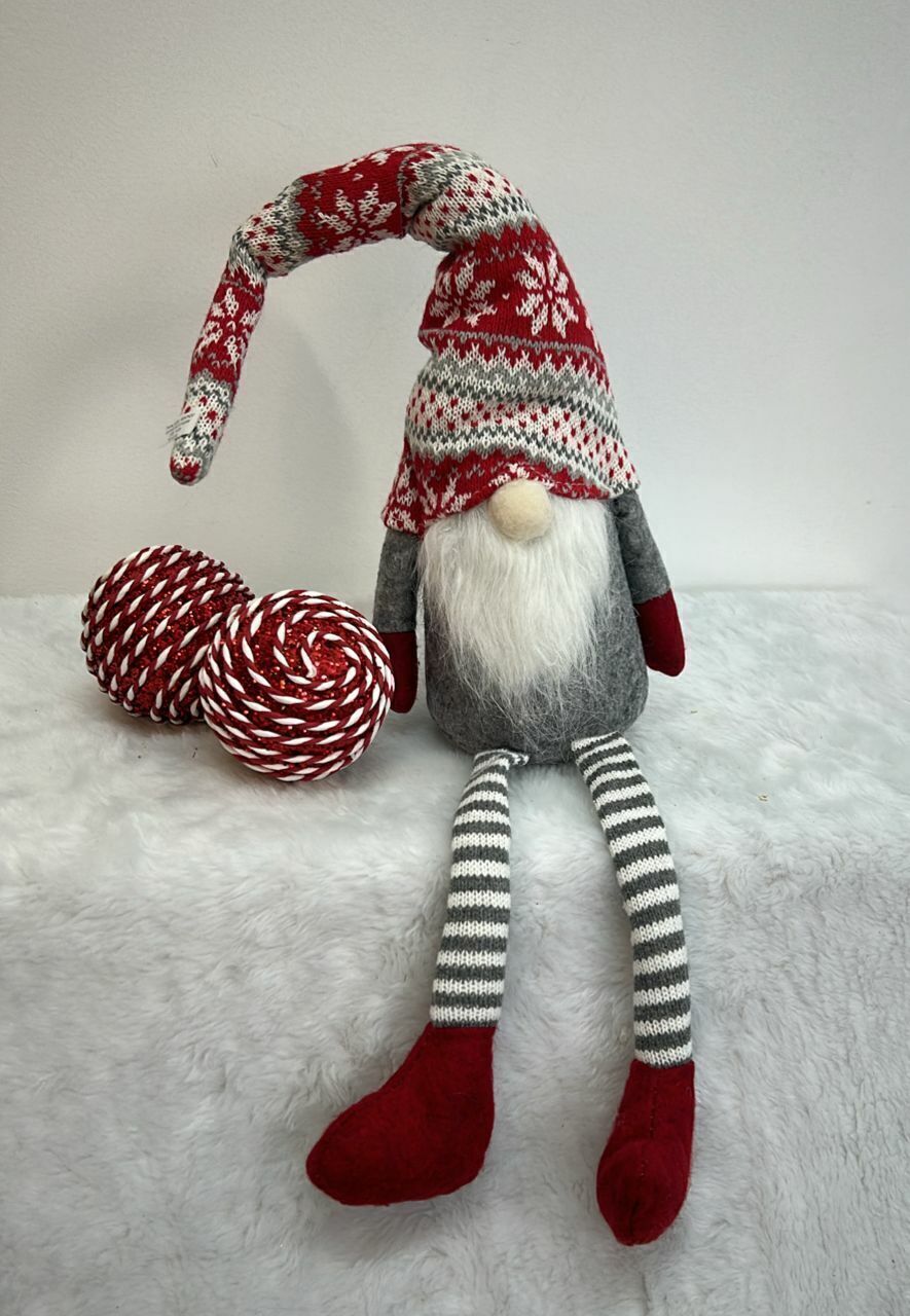 Papai Noel escandinavo sentado gorro bco/verm 30cm com bolas decorativas