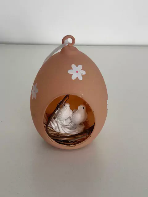 Pendente de vidro nude fosco com passarinho, com 11cm de altura.