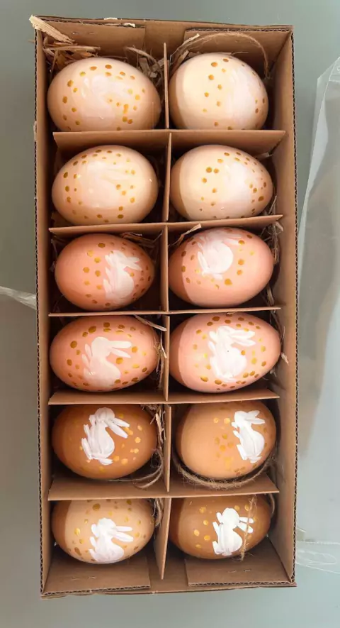 caixa com pendentes de ovo