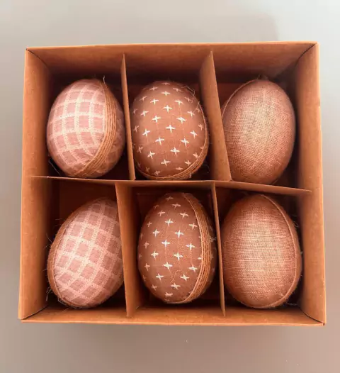 Pendente ovo de Páscoa forrados, caixa com 6 unidades, bege