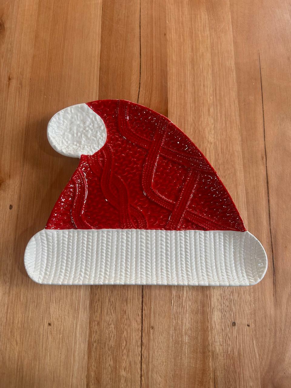 Petisqueira gorro Noel de cerâmica, com 25x20cm