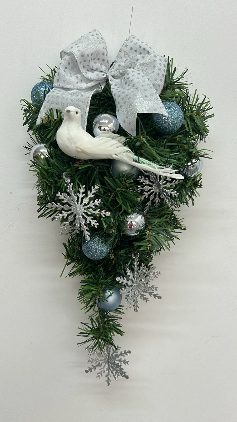 Pingente de Natal azul e branco com passarinho 45cm
