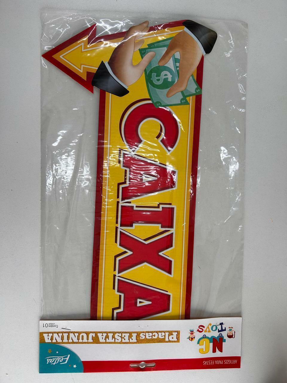 Placa de papelão “Caixa” para Festa Junina, com 60x26xm