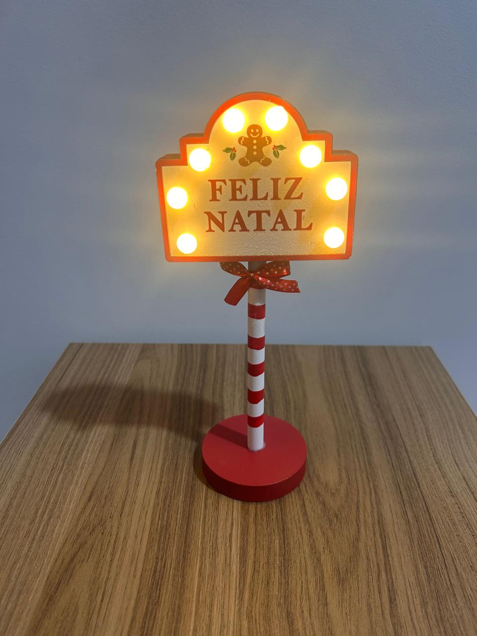 Placa Feliz Natal de madeira com led 24cm