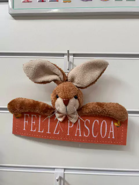 Placa feltro Feliz Páscoa rosa 22x30cm