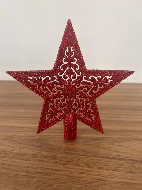 Ponteira árvore estrela xadrez verm e preta 22cm