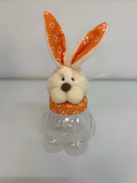 Pote de plástico transparente com tampa coelho laranja 7x18cm