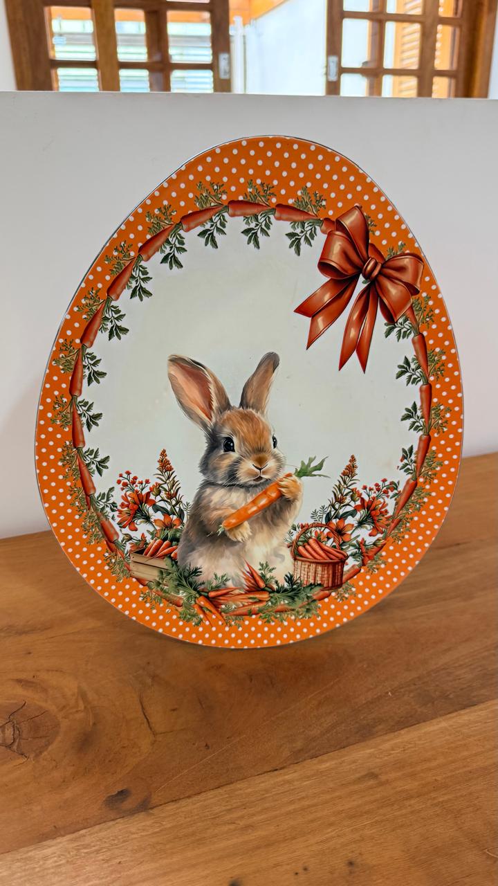 Prato oval decorativo Coelho laranja com 29x35cm