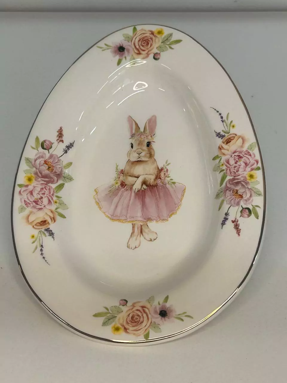 Prato oval porcelana coelha bailarina 20x15cm Cód. MP919