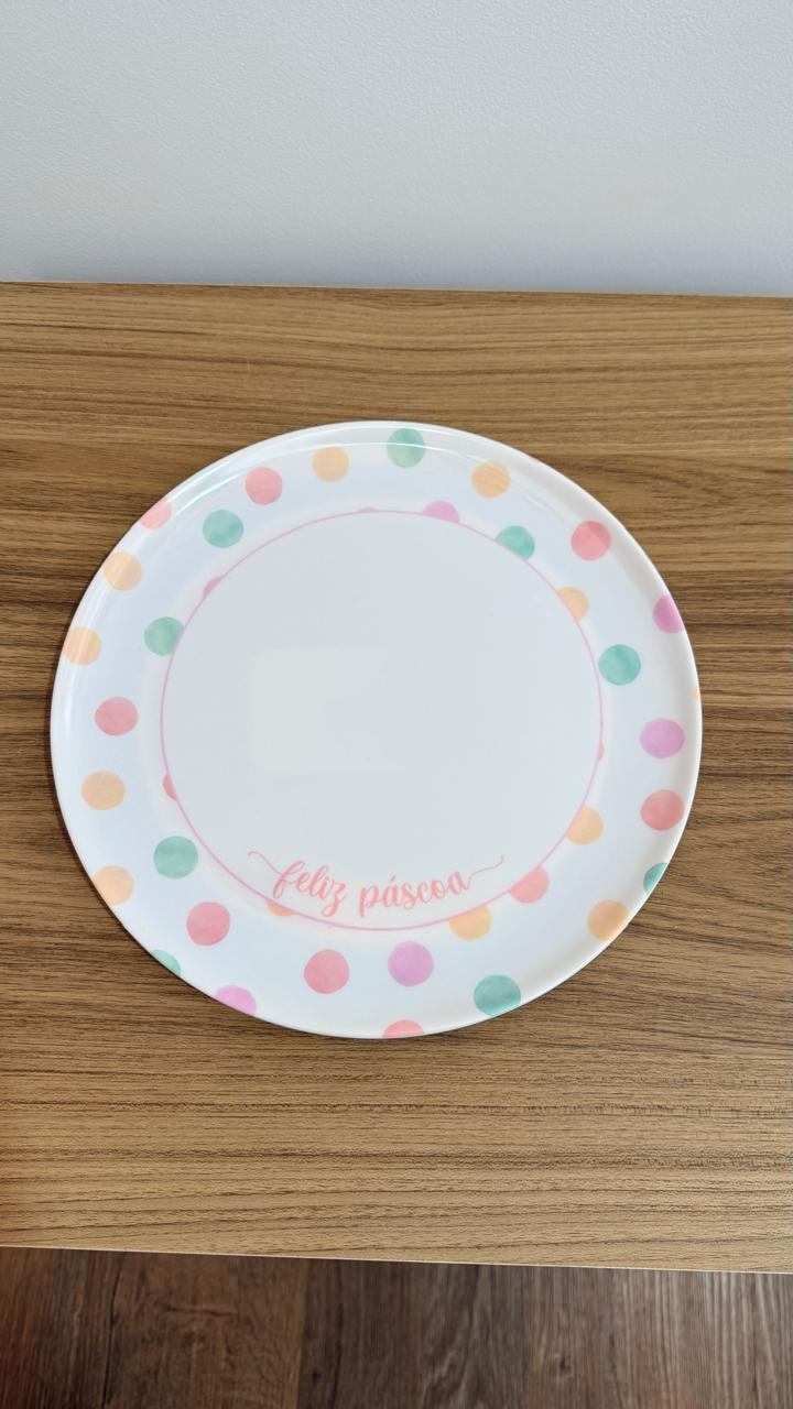 Prato raso melamina bolinhas Feliz Páscoa