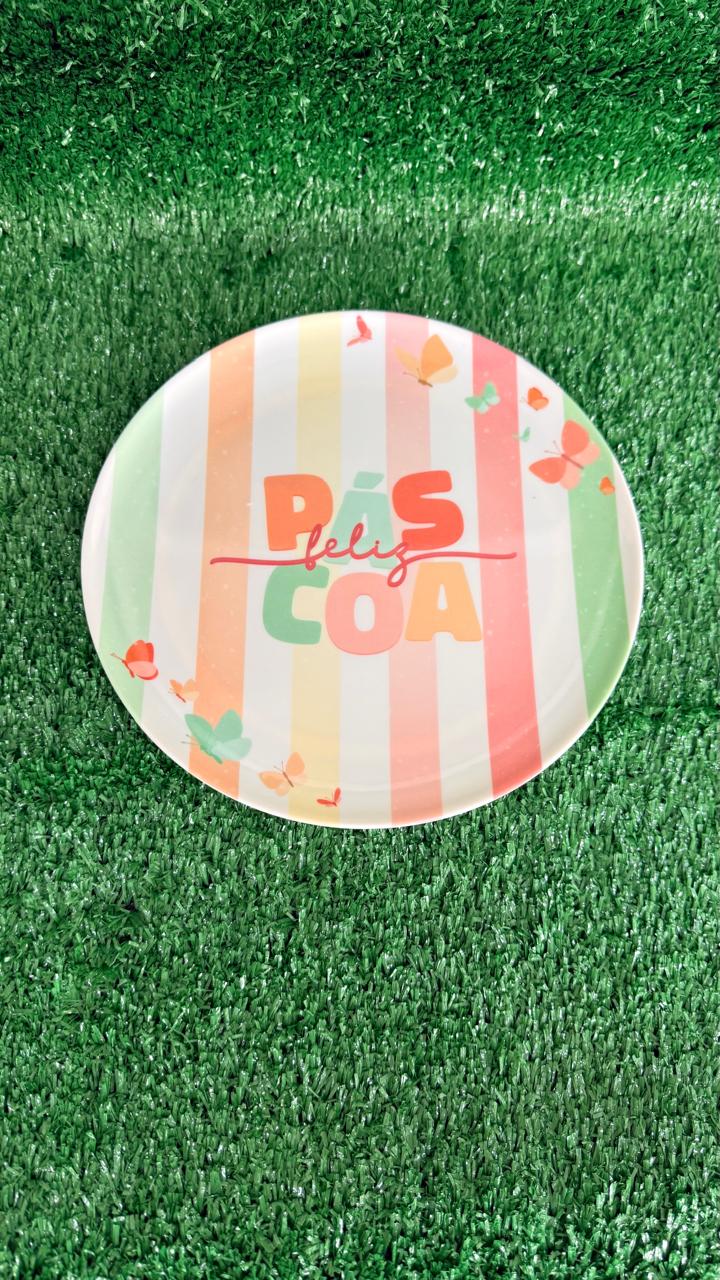 Prato raso melamina colorido Feliz Páscoa quantidade
