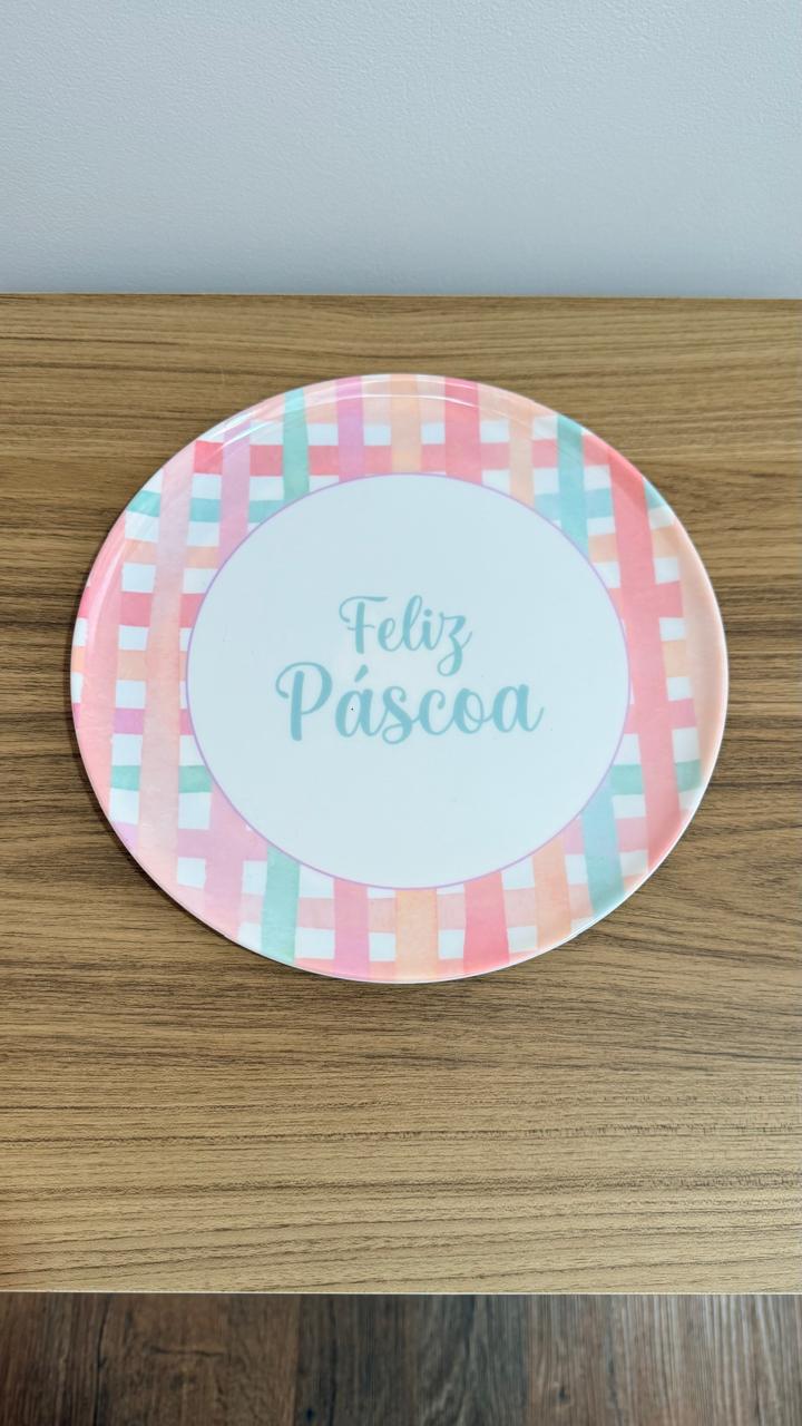 Prato raso melamina xadrez Feliz Páscoa quantidade