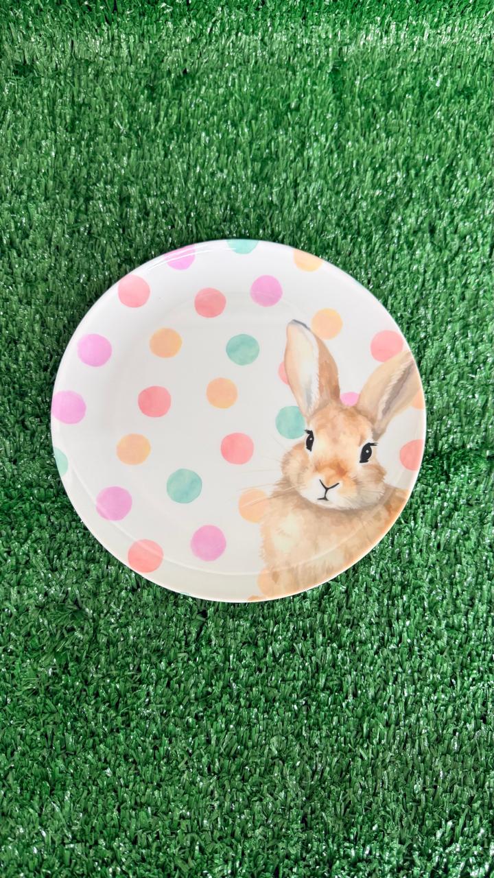 Prato sobremesa melamina bolinhas e coelho