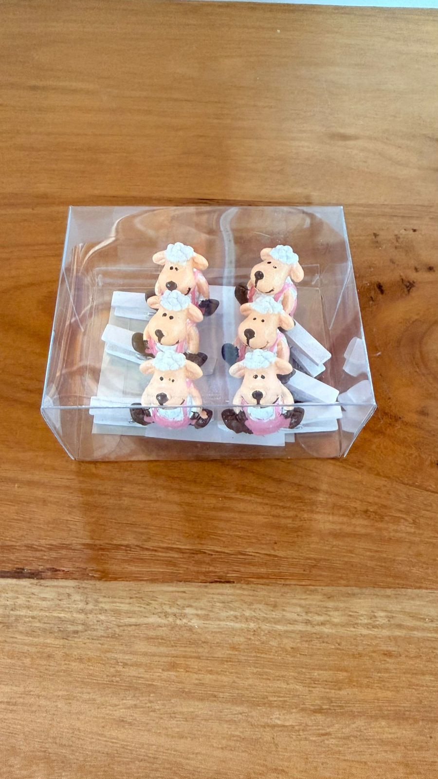Prendedores ovelha rosa, caixa com 6 unidades.