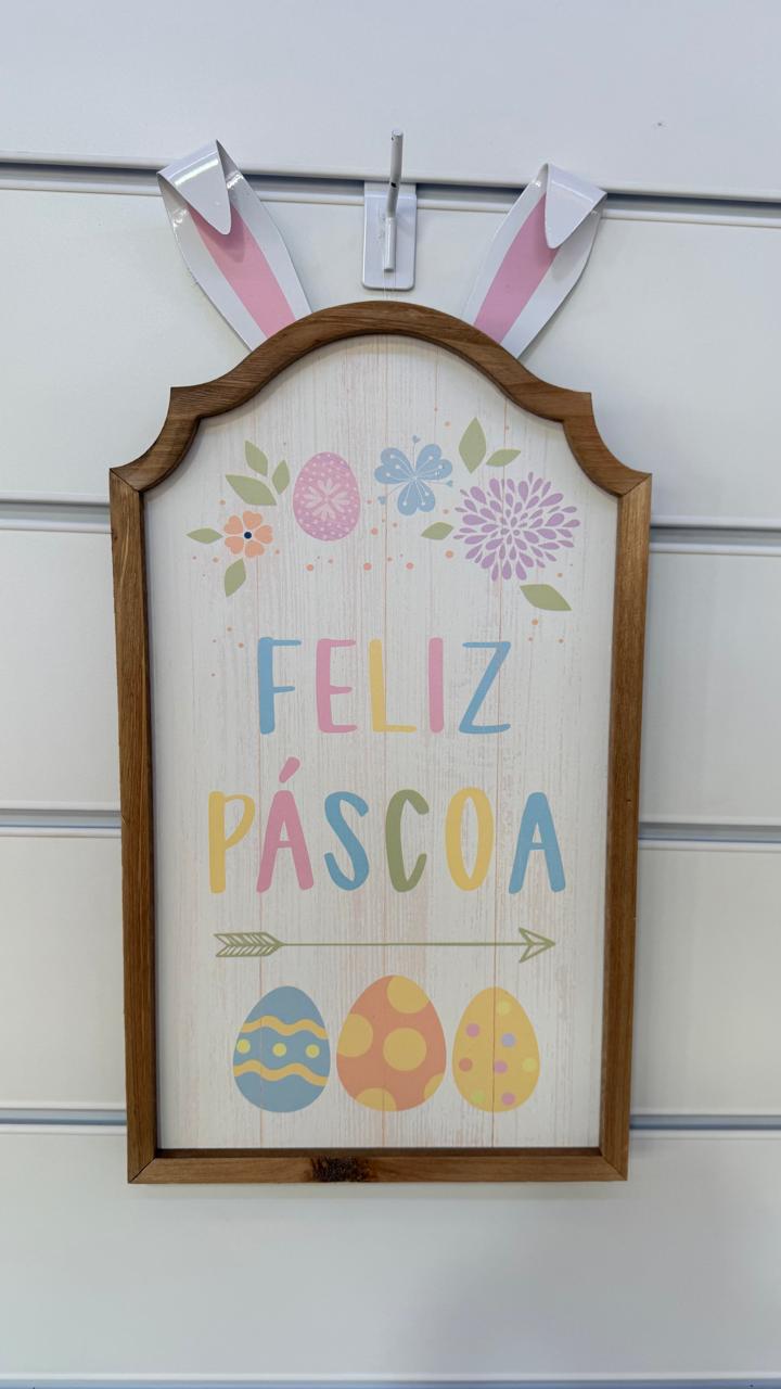 Quadro de madeira Feliz Páscoa 49,5x28cm quantidade