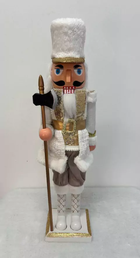 Quebra nozes branco e dourado com machado com 60cm altura